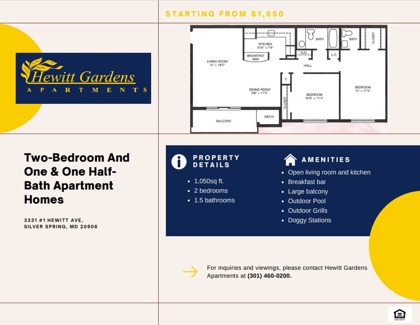 Welcome to your new home in Silver Spring, MD! This spacious 2-bedroom, 1.5-bathroom apartment is located on the first floor and offers a host of desirable features. The apartment is adorned with new carpeting throughout, adding a fresh and cozy touch to your living space. The kitchen is equipped with a breakfast bar and honey-colored cabinetry, complemented by durable Formica countertops. The master bedroom comes with its own bathroom, providing an added level of convenience and privacy. The apartment also features a ceiling fan, ensuring a comfortable atmosphere all year round. Step out onto your private, rear-facing balcony for a breath of fresh air and a relaxing outdoor space. Please note that while this unit is not recently renovated, it offers a comfortable and spacious living environment. Come and experience the comfort and convenience of this Silver Spring apartment!