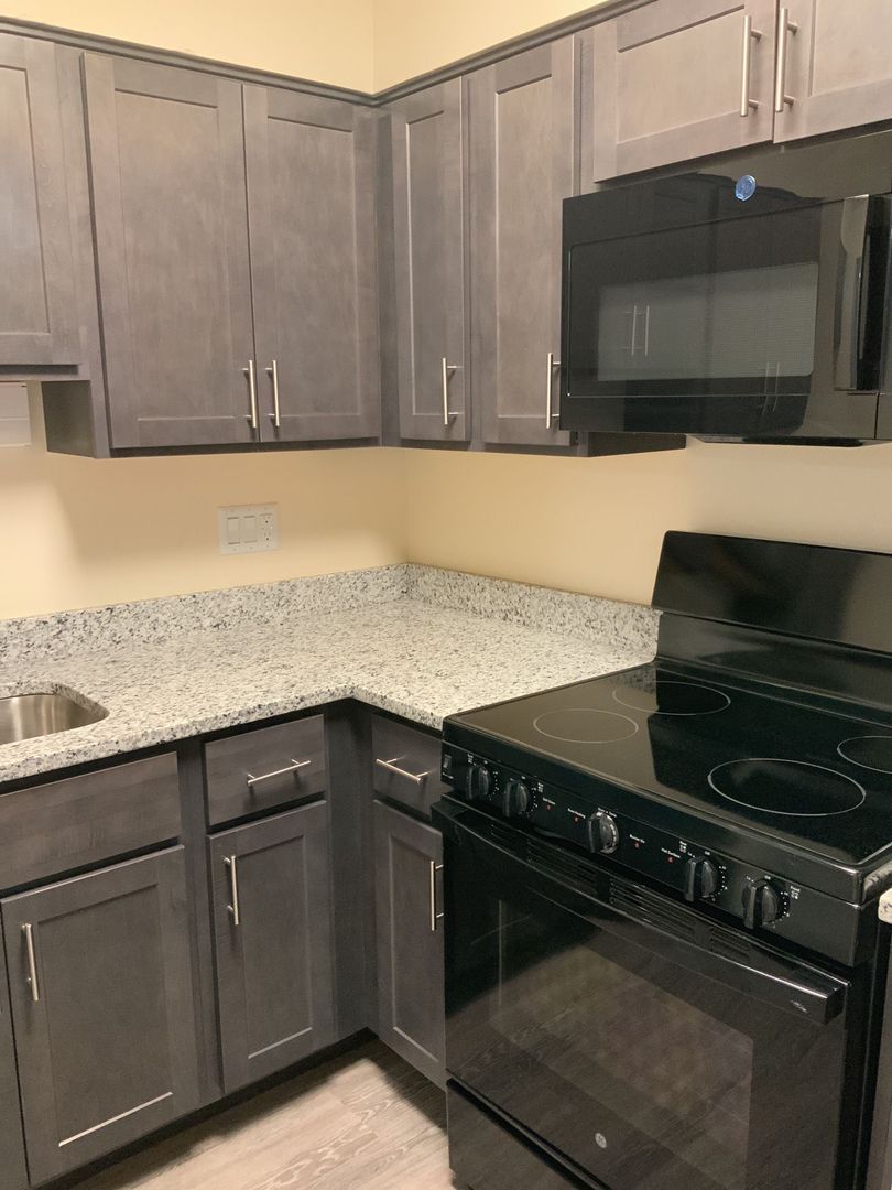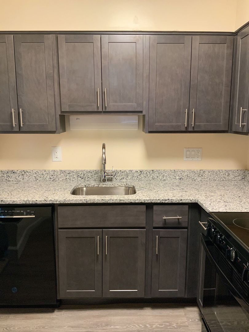 Beautiful Top floor apartment, fully renovated with grey cabinets, flooring in dining room & new appliances.
